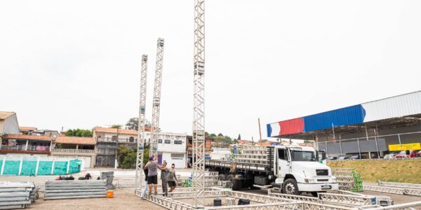 Montagem da estrutura da 41ª Festa da Uva Fina avança em Ferraz de Vasconcelos