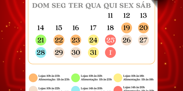 Por ocasião dos feriados natalinos e grande procura por presentes nesta época do ano, o Itaquá Park Shopping estará com horário especial. A partir desta sexta-feira (19/12), o horário de expediente das lojas será ampliado, assim como o da Praça…